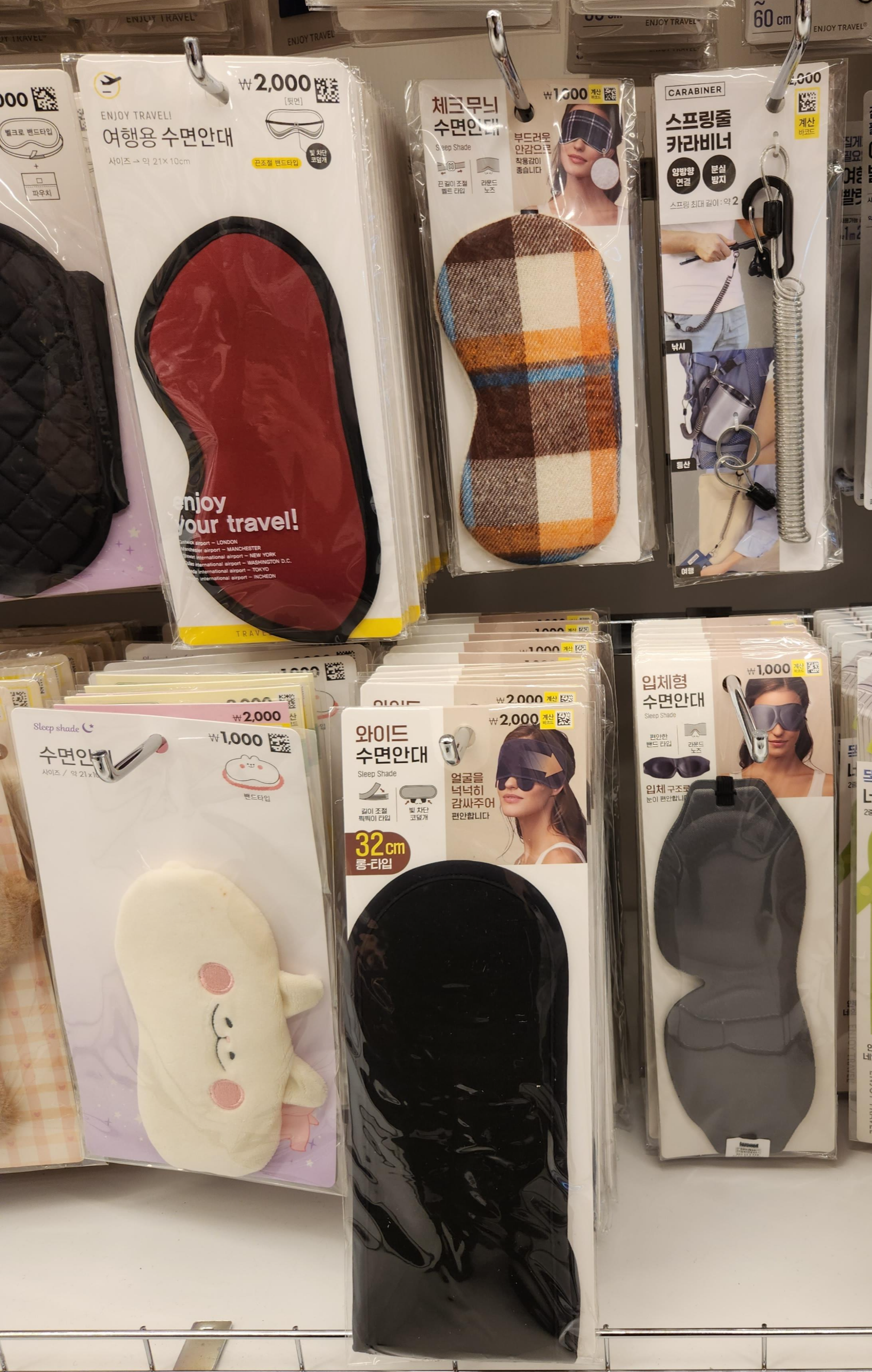 1000원, 2000원으로 양질의 잠을 잘 수 있도록 도움을 주는 안대는 필수품입니다.