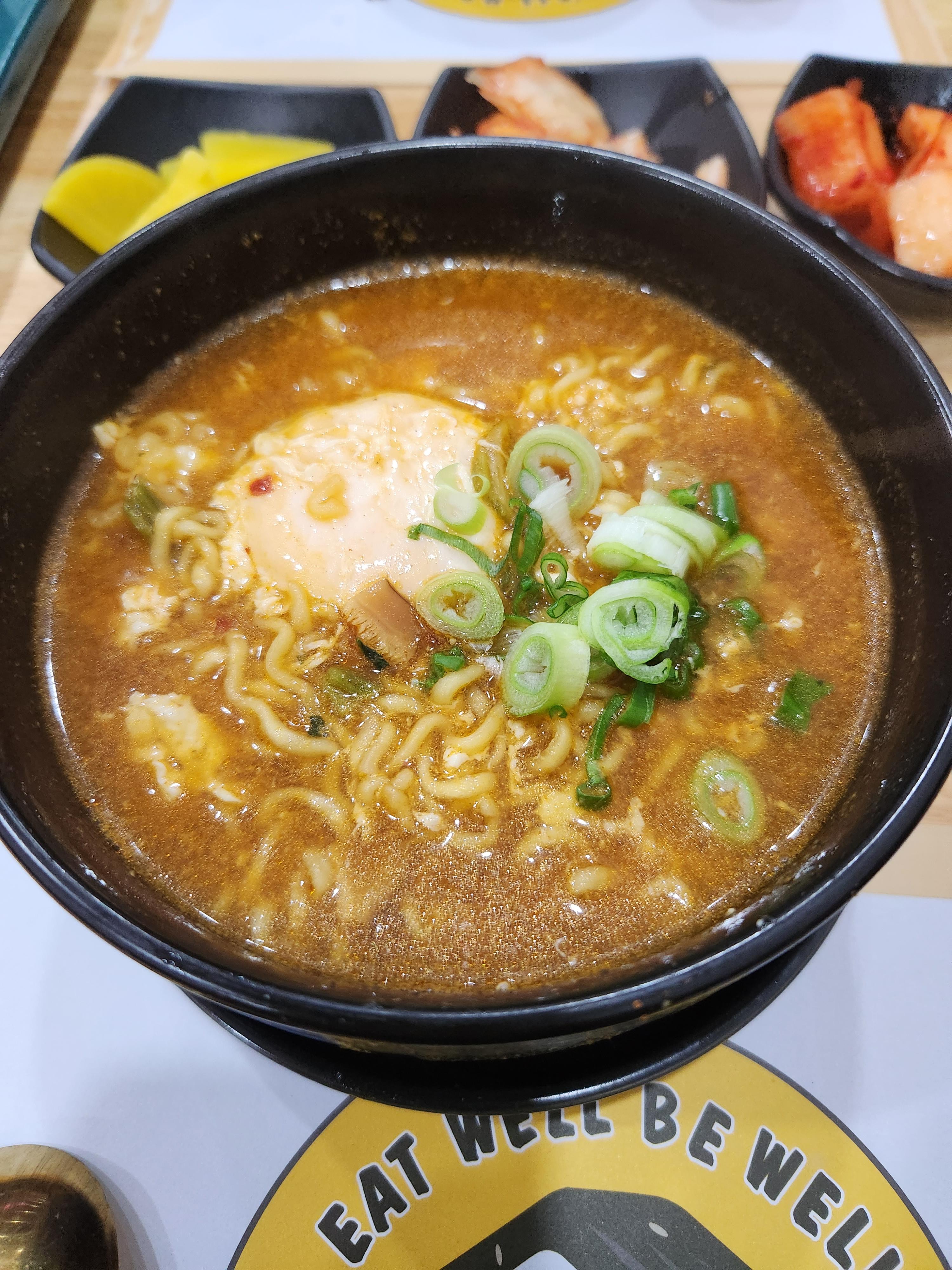 라면은 안성탕면 같았는데, 조금 진하거나 짠 느낌이었고요.