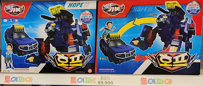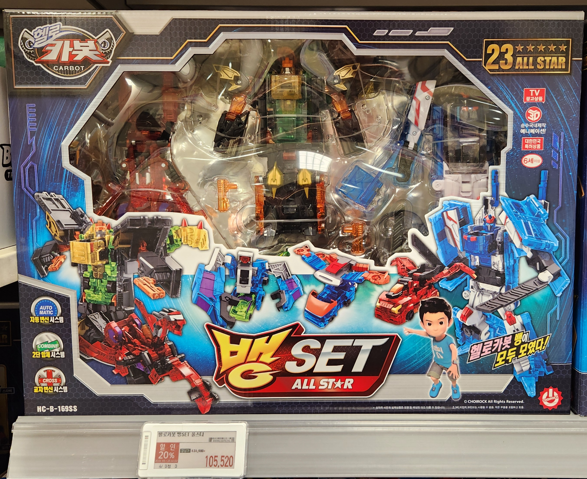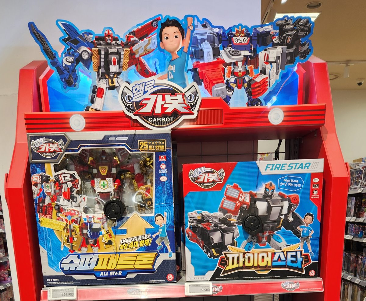 장난감매장에 가시면 '헬로카봇' 전용 부스가 이렇게 있습니다.