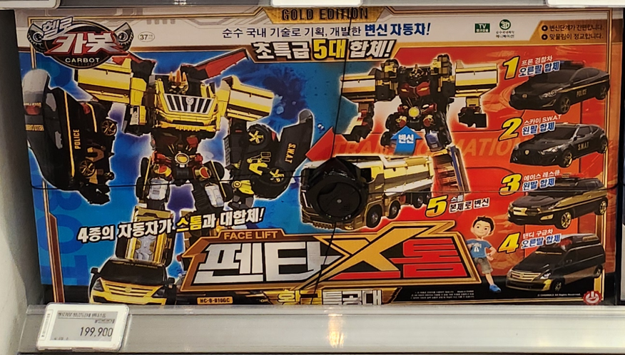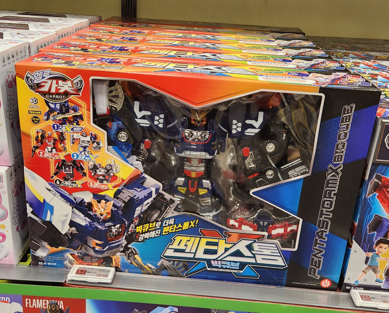 펜타스톰은 5단 합체 로봇으로 비싼 가격만큼이나 멋져보입니다.