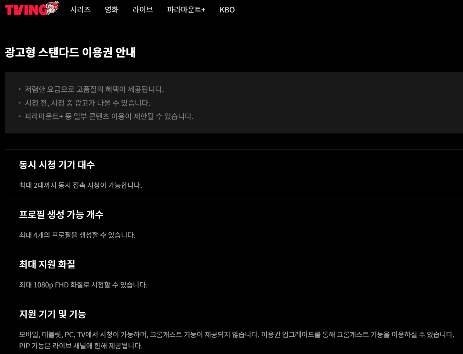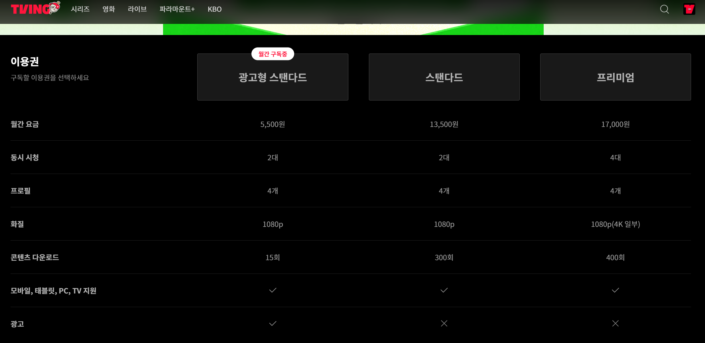 티빙을 보는 목적에 따라 적당한 요금제 선택하시길 바랍니다.