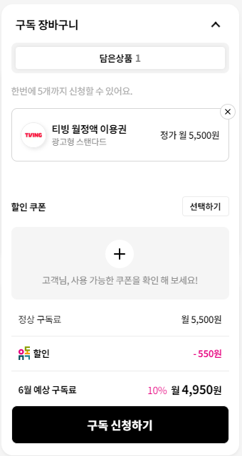 이 절차만 마치면 드디어 구독 신청이 완료됩니다.