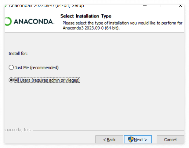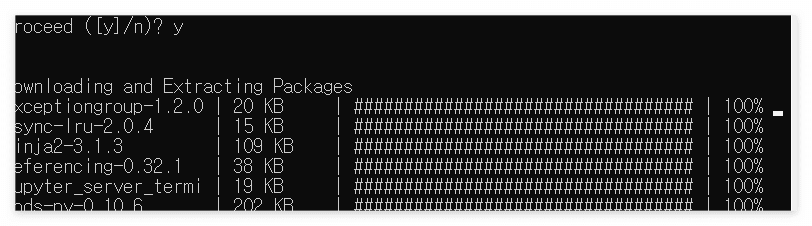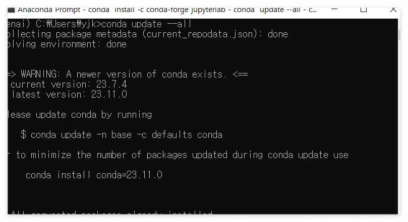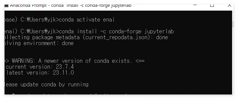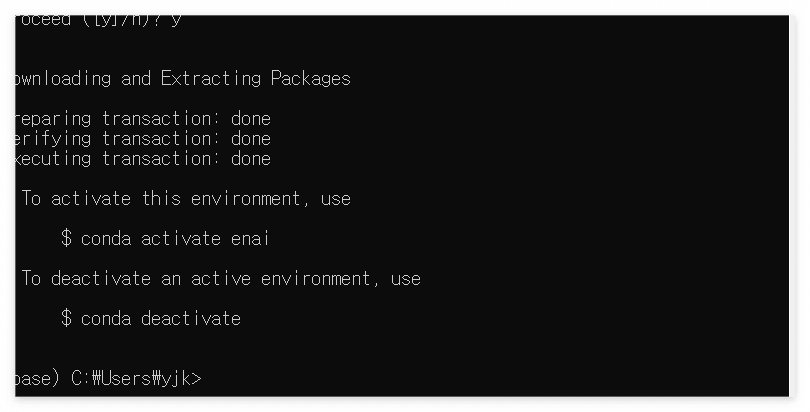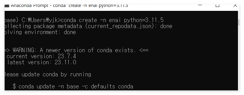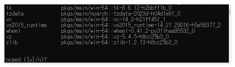(enail)이름으로 가상환경을 만들면서 파이썬 버전을 함께 입력한다.